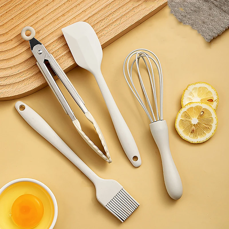 1. Multi-functional kitchen utensil set: It includes a variety of essential kitchen tools such as a baking spatula, oil brush, egg beater and food tongs. It integrates multiple functions into one, making it practical and cost-effective.