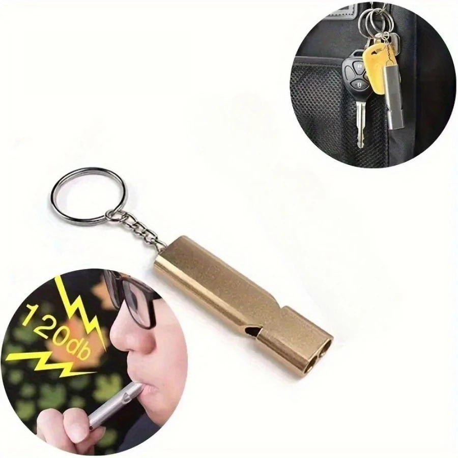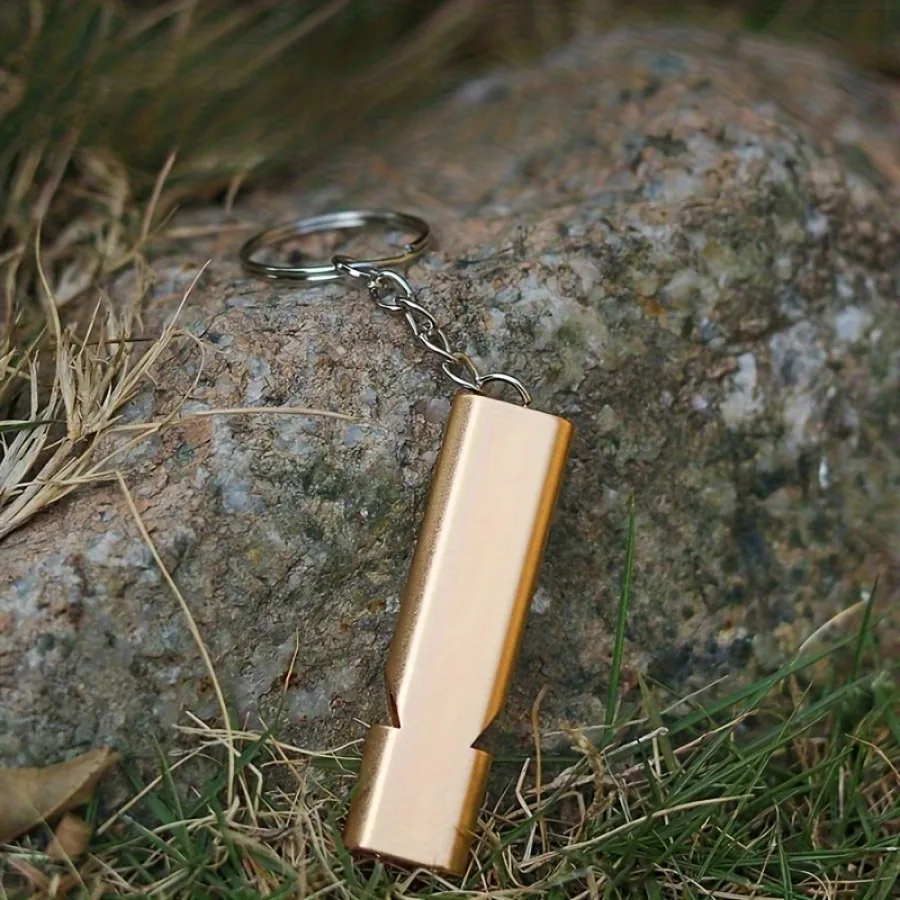 Using this golden survival whistle keychain, it is portable and can be carried with a backpack or keychain whenever traveling, without adding extra weight, making it suitable for outdoor adventures. High volume, high-frequency whistle, strong penetration, can quickly seek help in emergency situations with long-distance sound transmission in mountainous areas, forests, or wilderness. Multi scenario adaptation is essential for camping, hiking, and trekking.