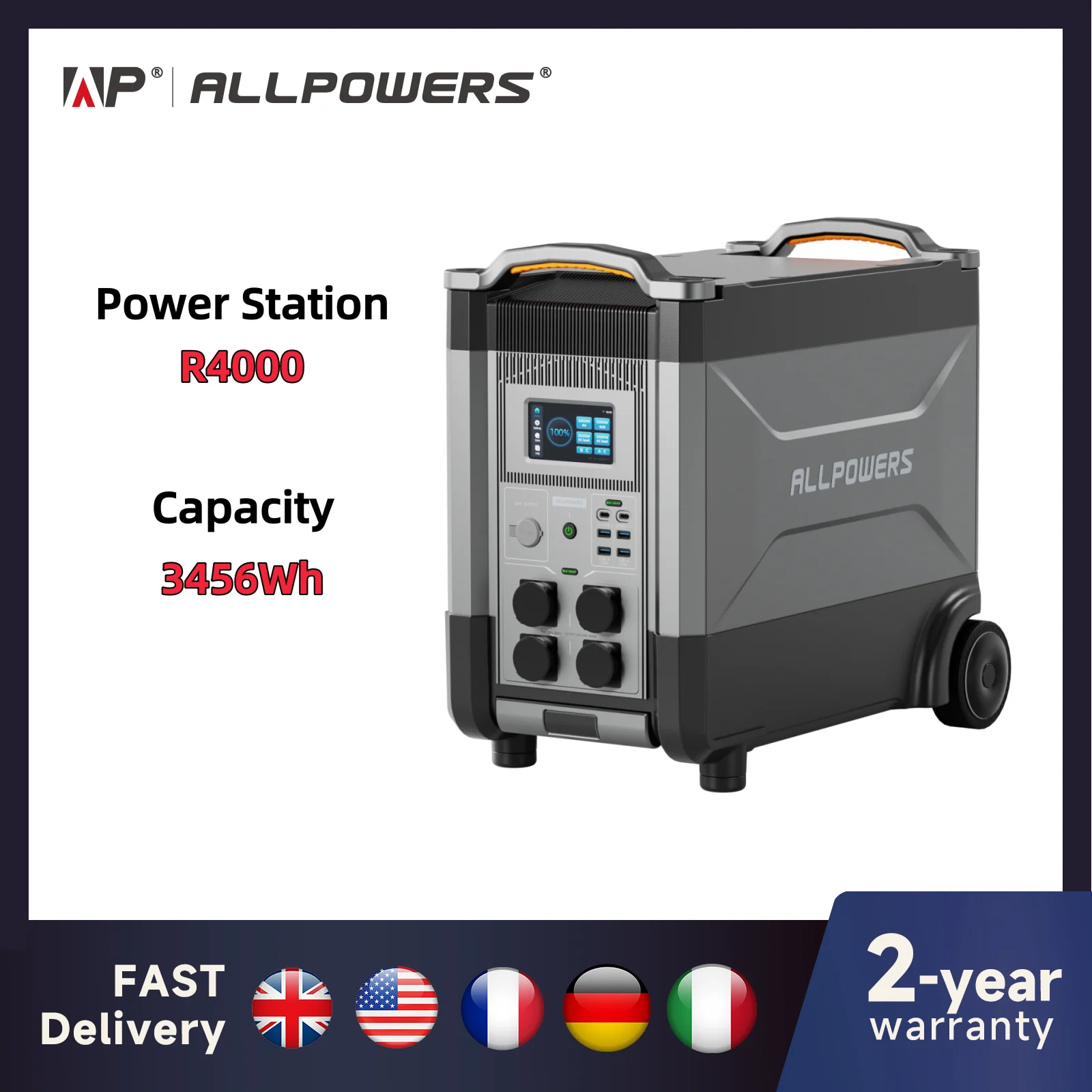 [Warranty & Included] ALLPOWERS R4000 offers you 5 YEARS warranty and with friendly customer service. Delivery Contents: 1 * ALLPOWERS R4000 Portable Power Station, 1* AC Charging Cable, 1 * MC-4 to XT60 Charging Cable, 1 * User Manual.