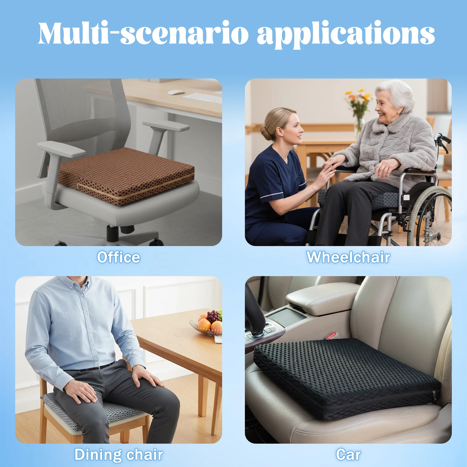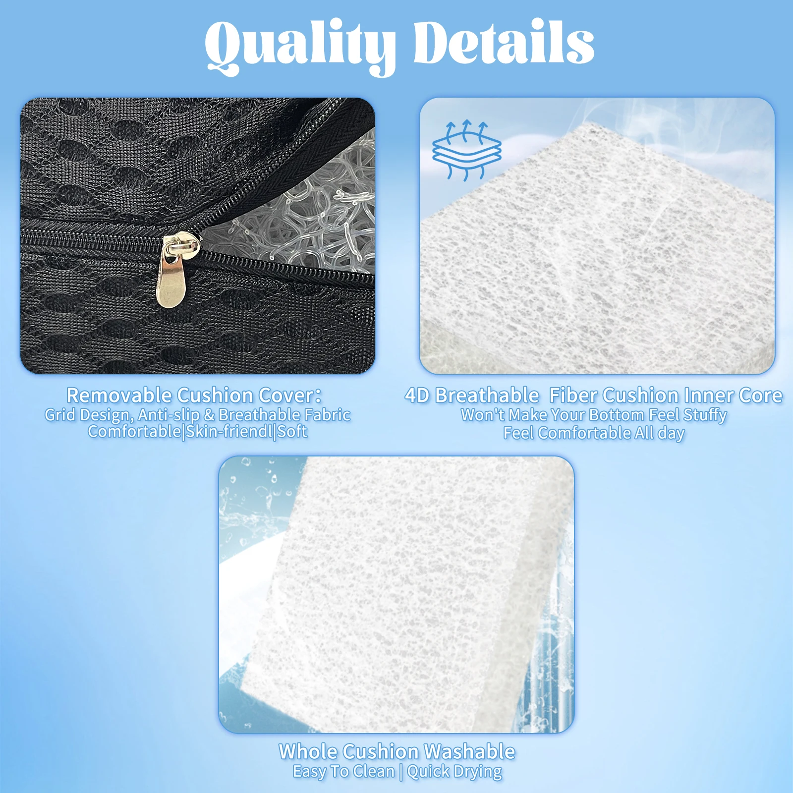 Tailbone Sciatica Back Pain Relief Comfort Office Chair Seat Cushion Wheelchair Non-Slip Breathable Fiber Seat Pad Cushion